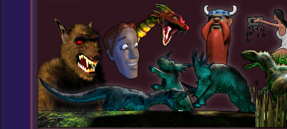 Real time infant and adult dragons - designed, modeled, textured, rigged and animated to a intuitive AI. Also, the dragon's food: squeebles.